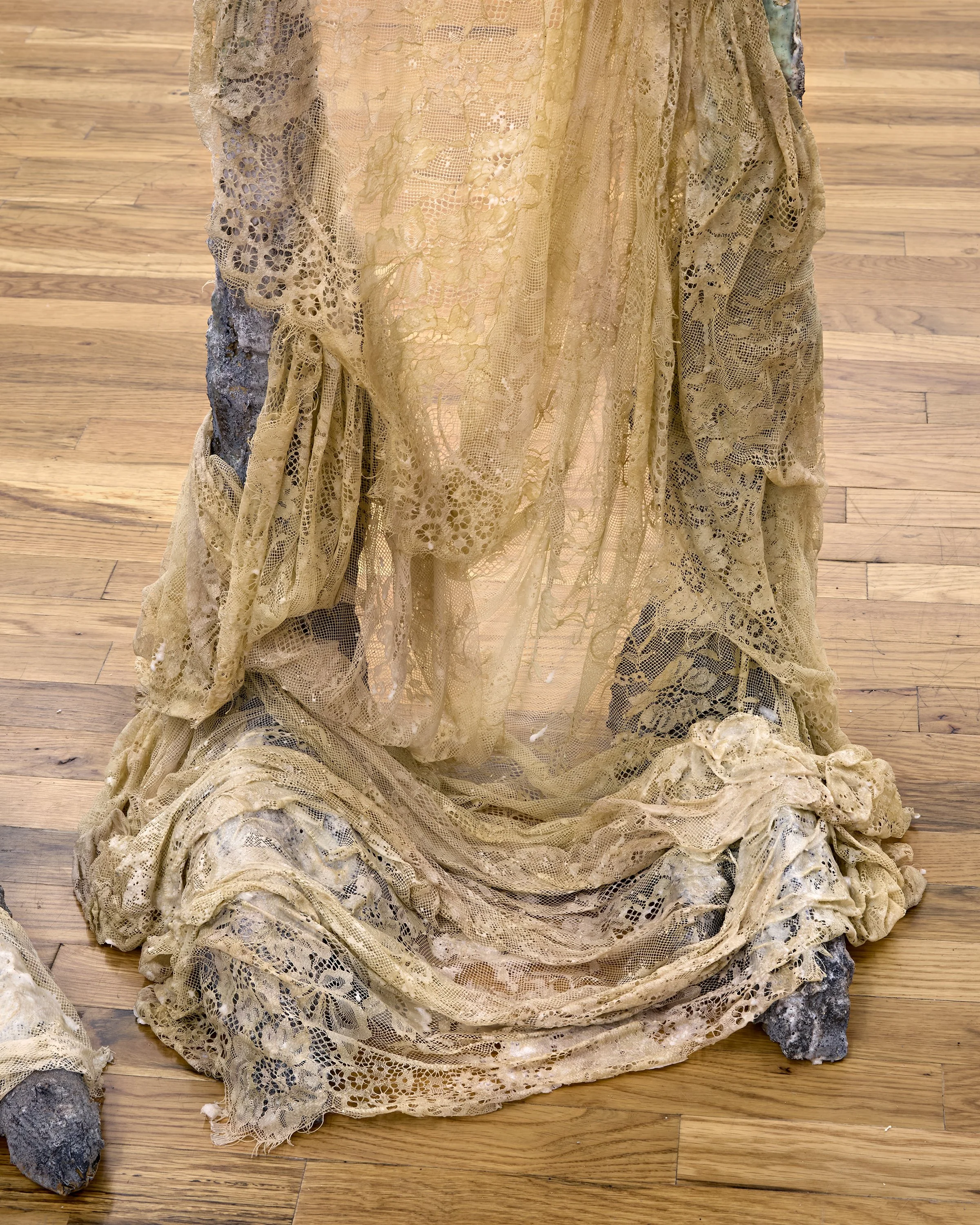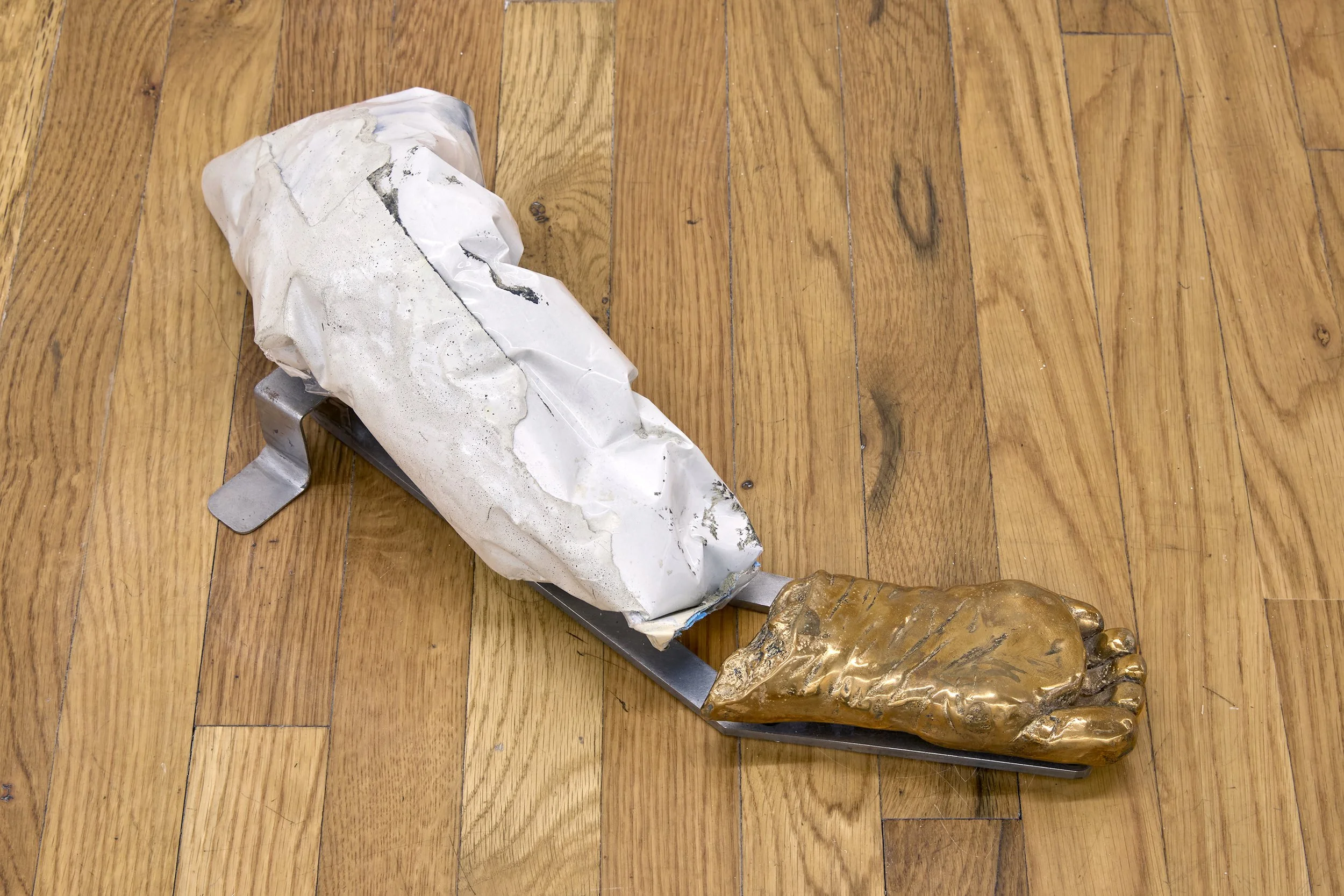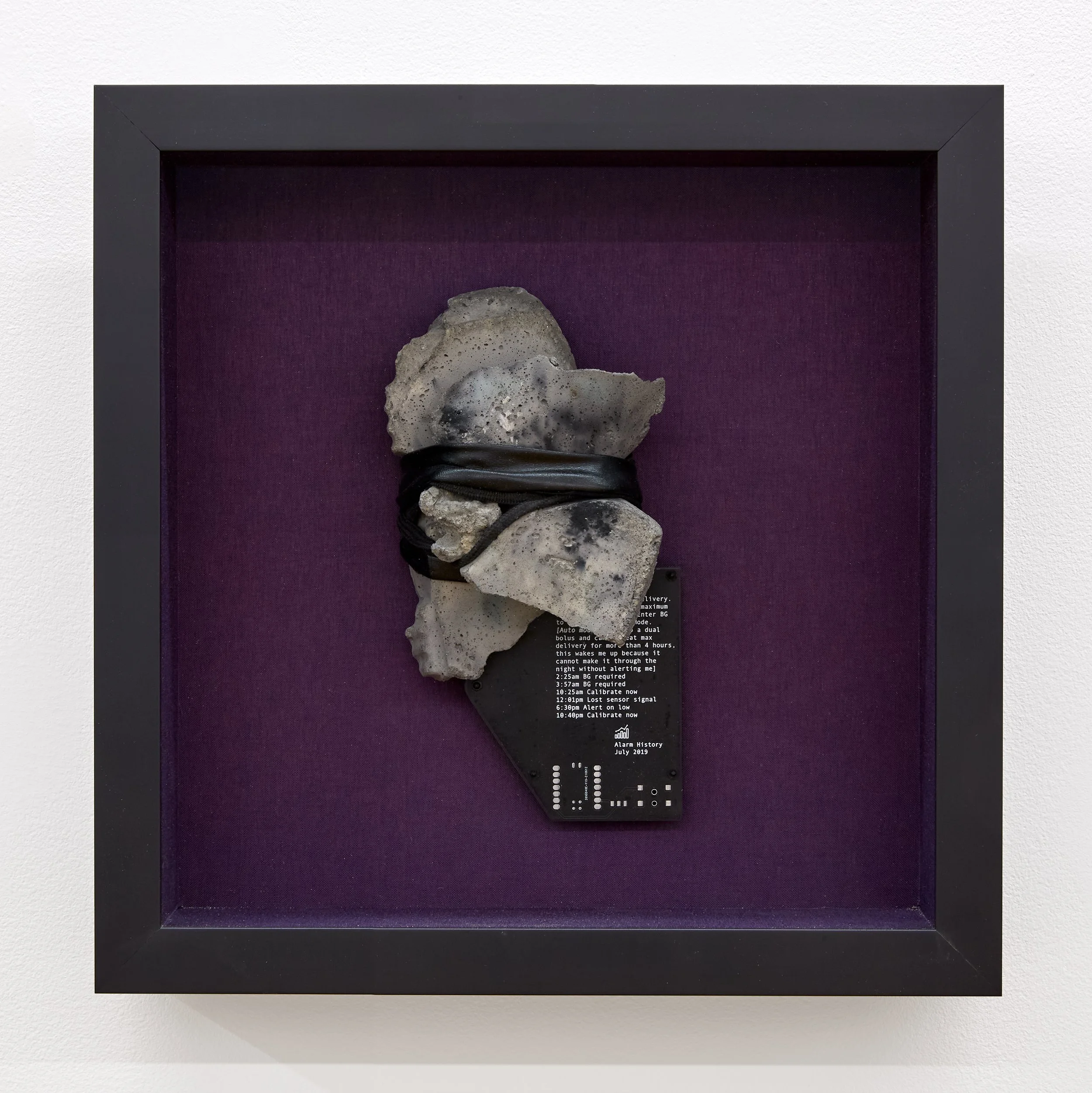 In continuation with perceptual dissolution, the works of Itziar Barrio and Phoebus Osborne bring us closer to the embodied, showing that what breaks down first is also what begins to mutate. Itziar Barrio’s “not-so-smart” looking sculptures Dirty Feet, Was on Low, and Artifact series dwell on monstrosity through the lens of the crippled and the outcast. Made of spandex taken directly from the artist’s own clothing, concrete, tubing, pumps, and data sourced from her collaborator’s insulin pump and sensor system, the robotic sculpture becomes a small “monster” carrying bodily residue and traces of daily life. It inflates and deflates like breath, urging us to pay attention to the nearly imperceptible transformations happening within and around us.